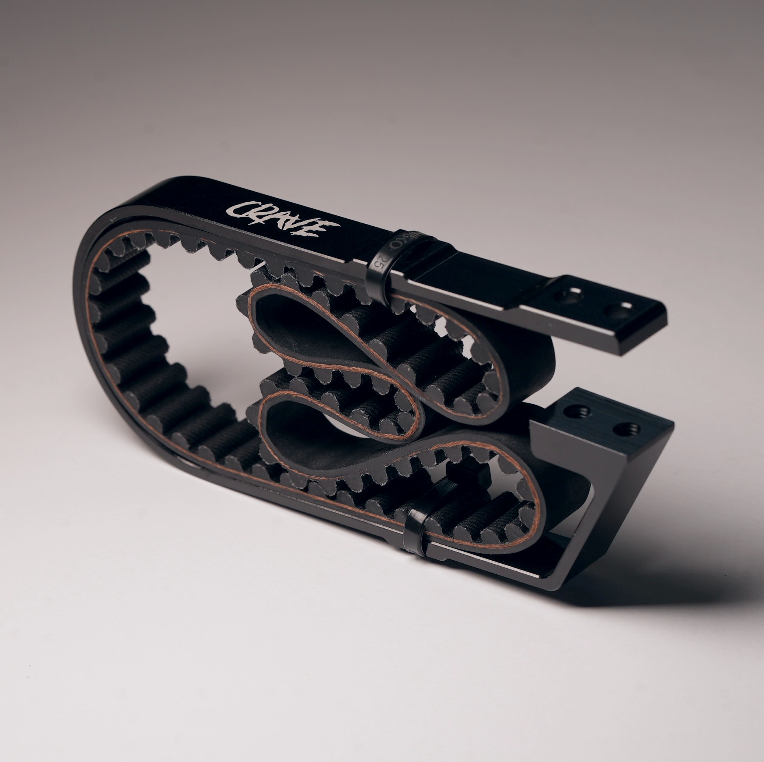 מחסנית רצועה רזרבית לזרוע אחורית CRAVE לסורון לייט בי — מאפשר להחליף רצועה קרועה בשטח בתוך דקות, בלי לפרק גלגל, זרוע או ג’ק-שאפט.